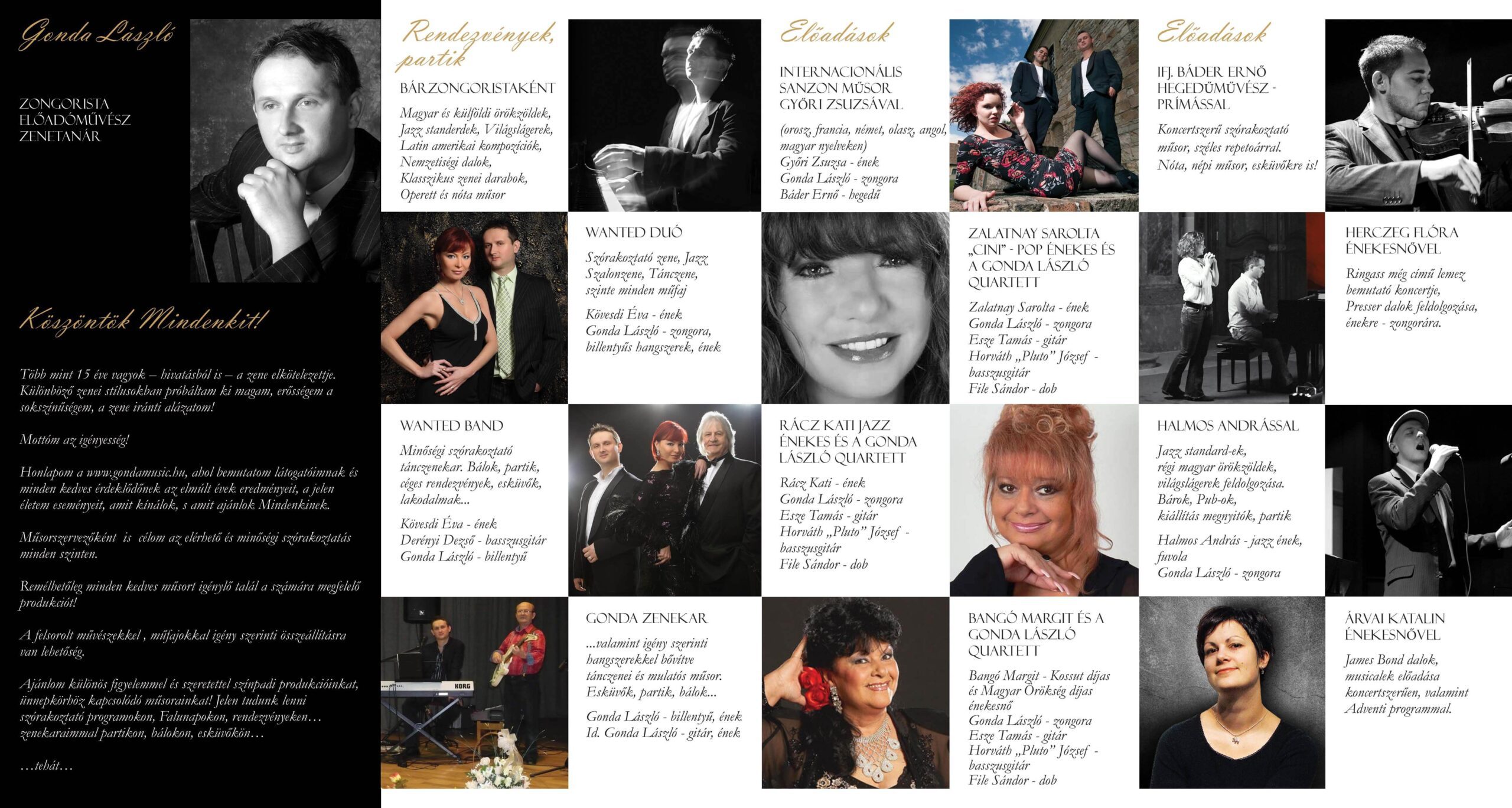 Áttekintés a GondaMusic Produkció és az Egri Zenészek Egyesületének munkájáról: fellépésekhez kapcsolódó plakátok, fotók, videók és interjúk, valamint Gonda László művészi tevékenységének dokumentumai egy helyen.