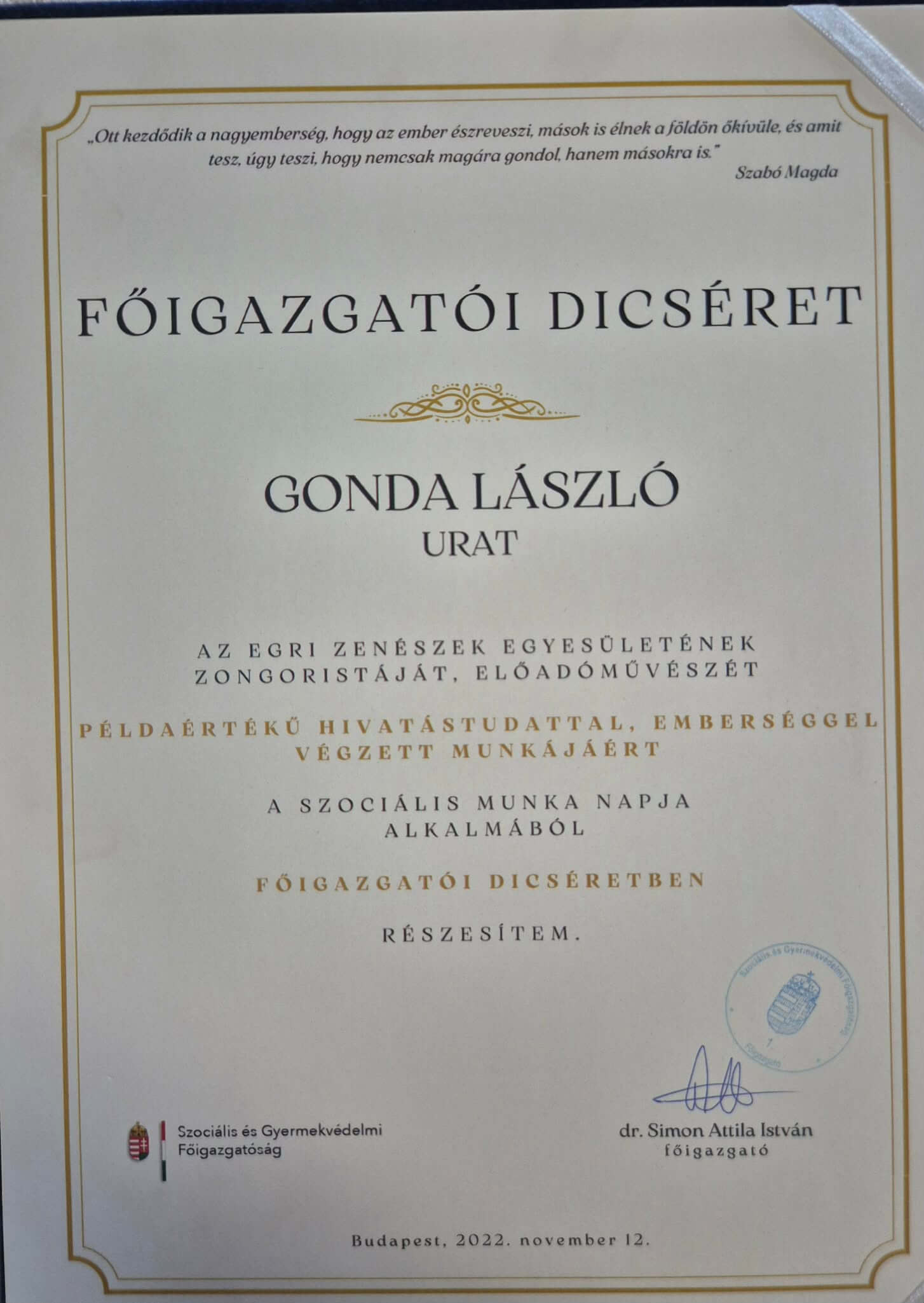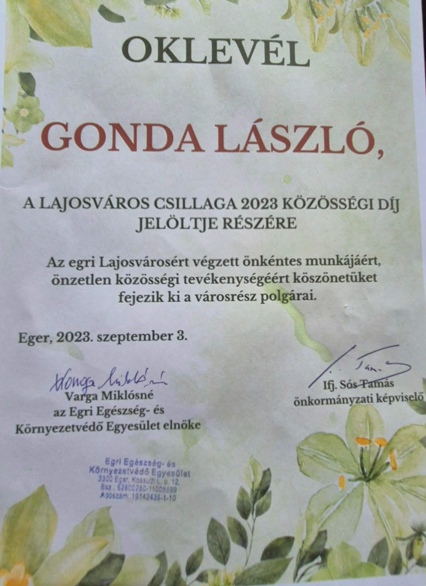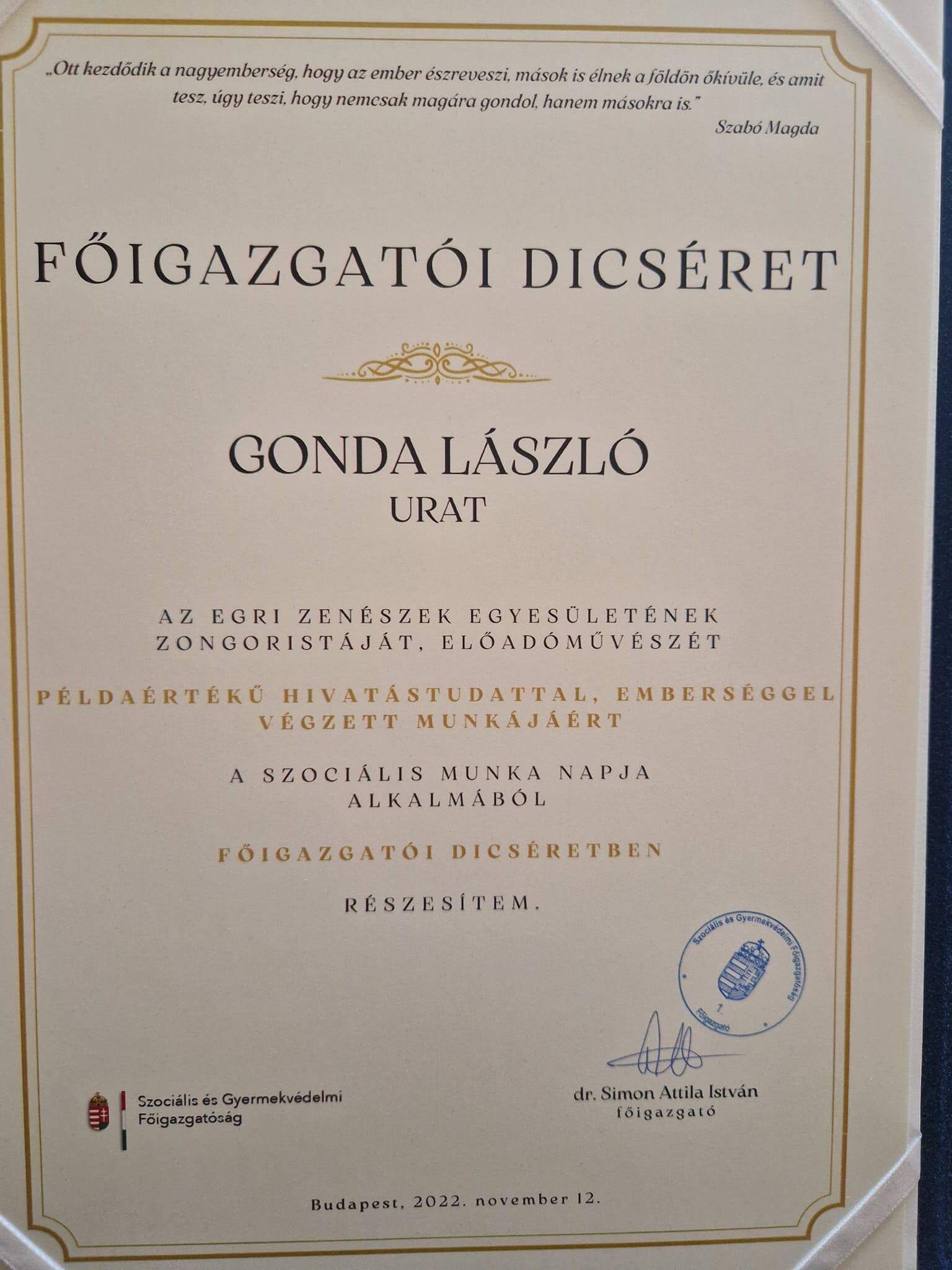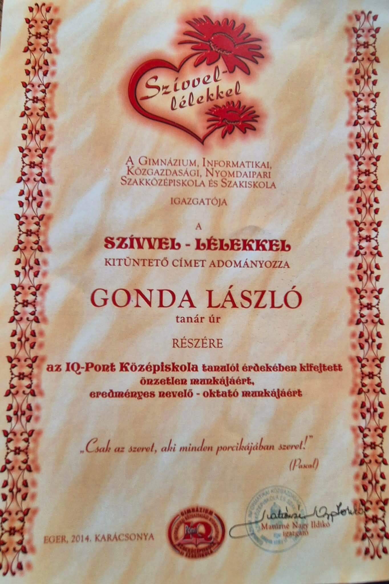 Elismerései: