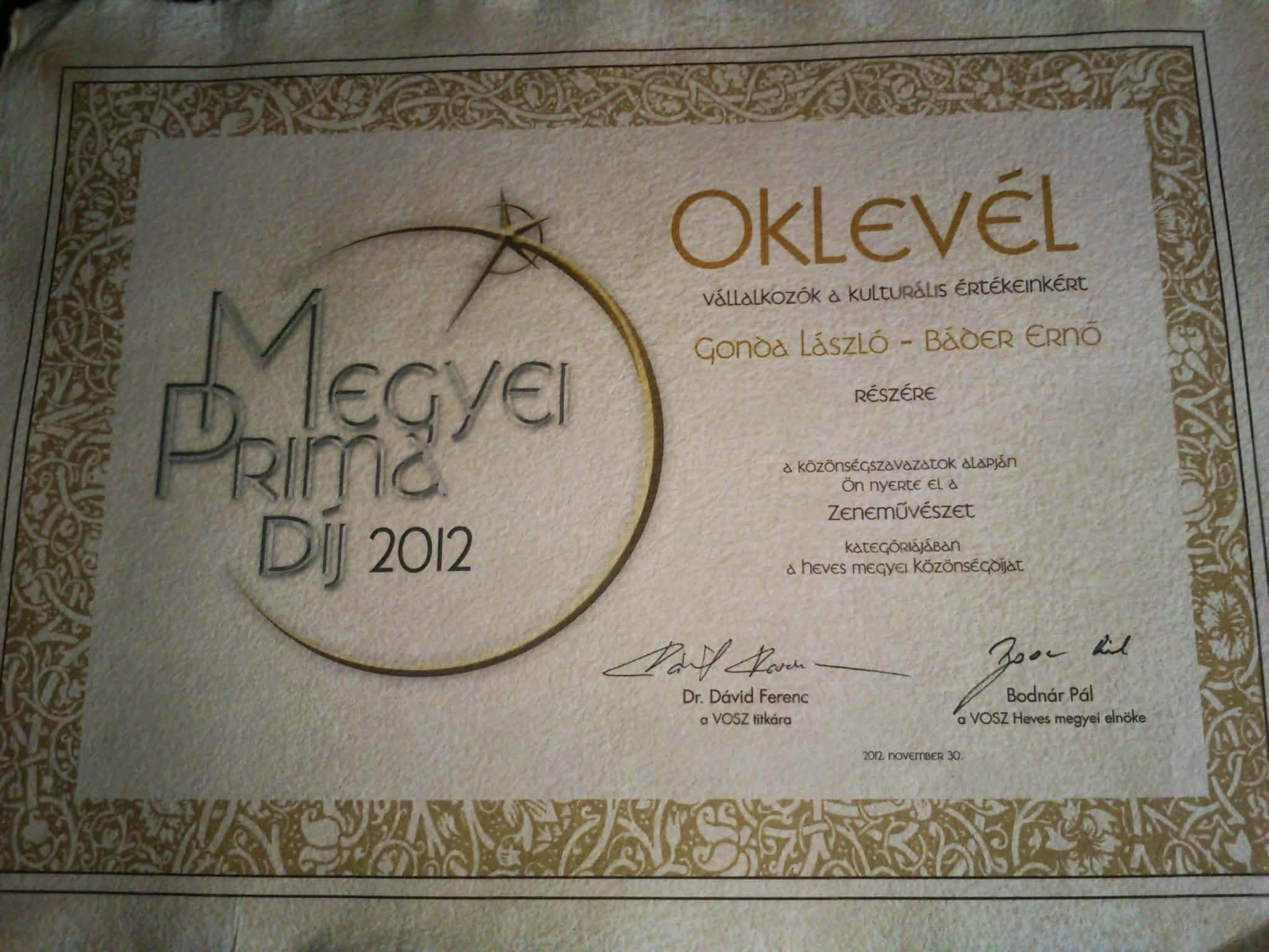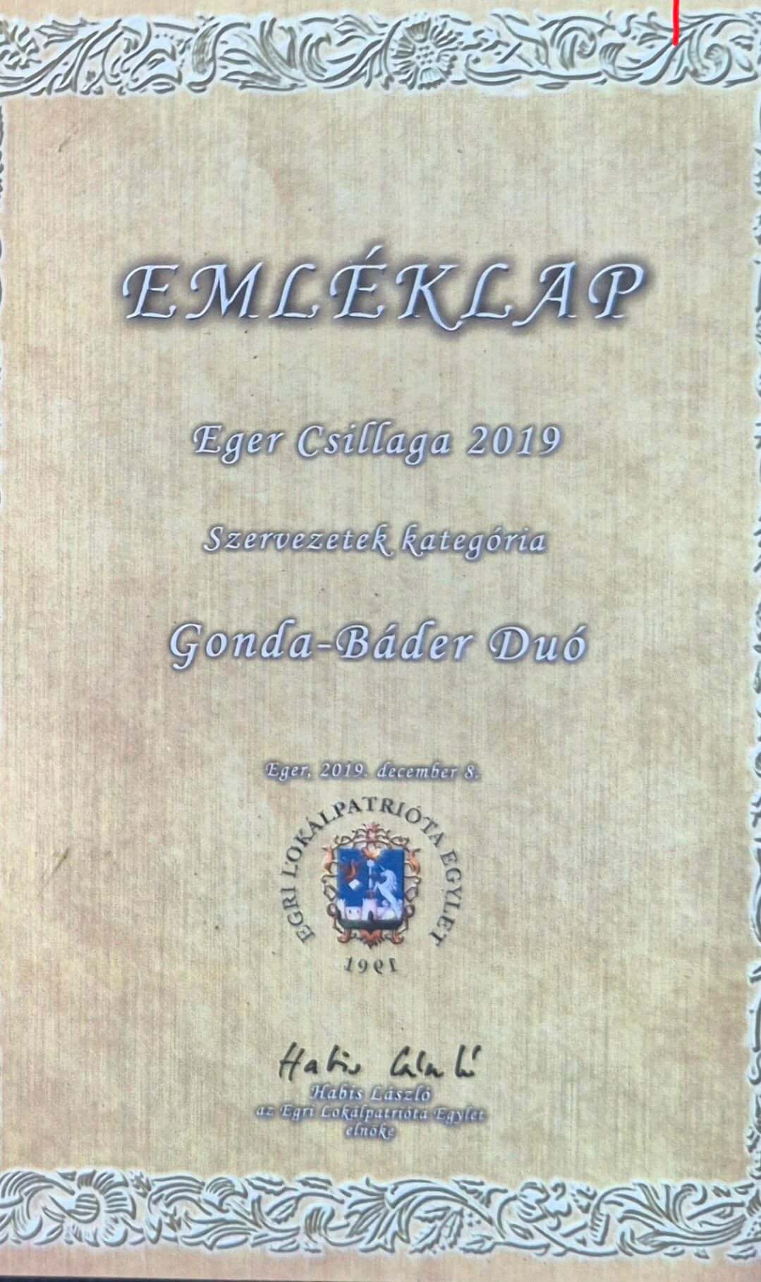 A Gonda-Báder duó tevékenységét 2012-ben Heves megyei Prima Közönségdíjjal, 2013-ban Heves megyei Prima-díjjal jutalmazták. Mindketten elnyerték a Heves Megye Nagykövete címet is. A duó 2018 januárjában Nyitrai Zsolt Eger és térsége országgyűlési képviselője elismerését vehette át a magyar kultúra napja alkalmából rendezett ünnepségen az Eszterházy Károly Egyetem dísztermében.